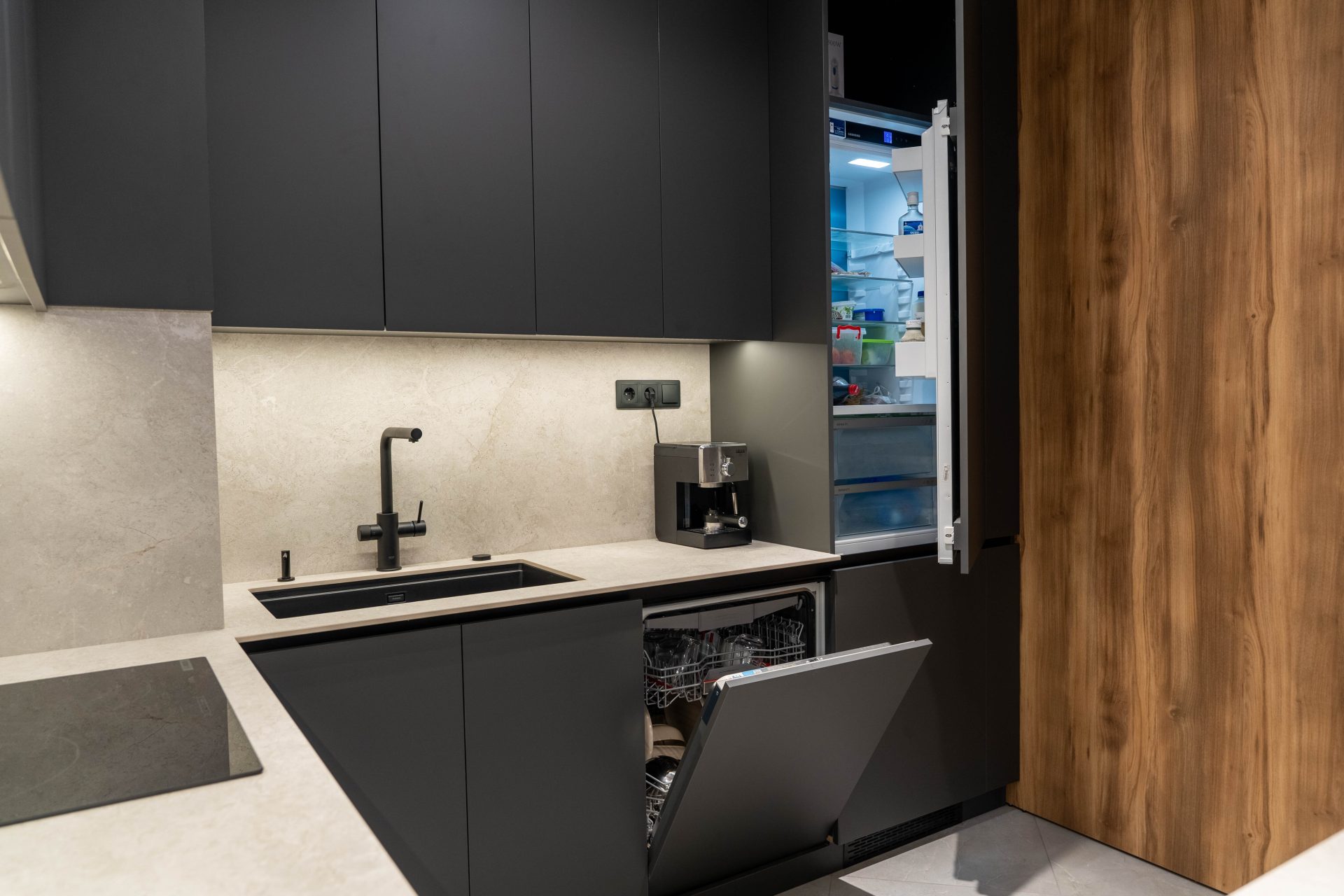 Резултатът е кухня, която комбинира стил, изчистен дизайн и висока функционалност – идеална за съвременния дом.